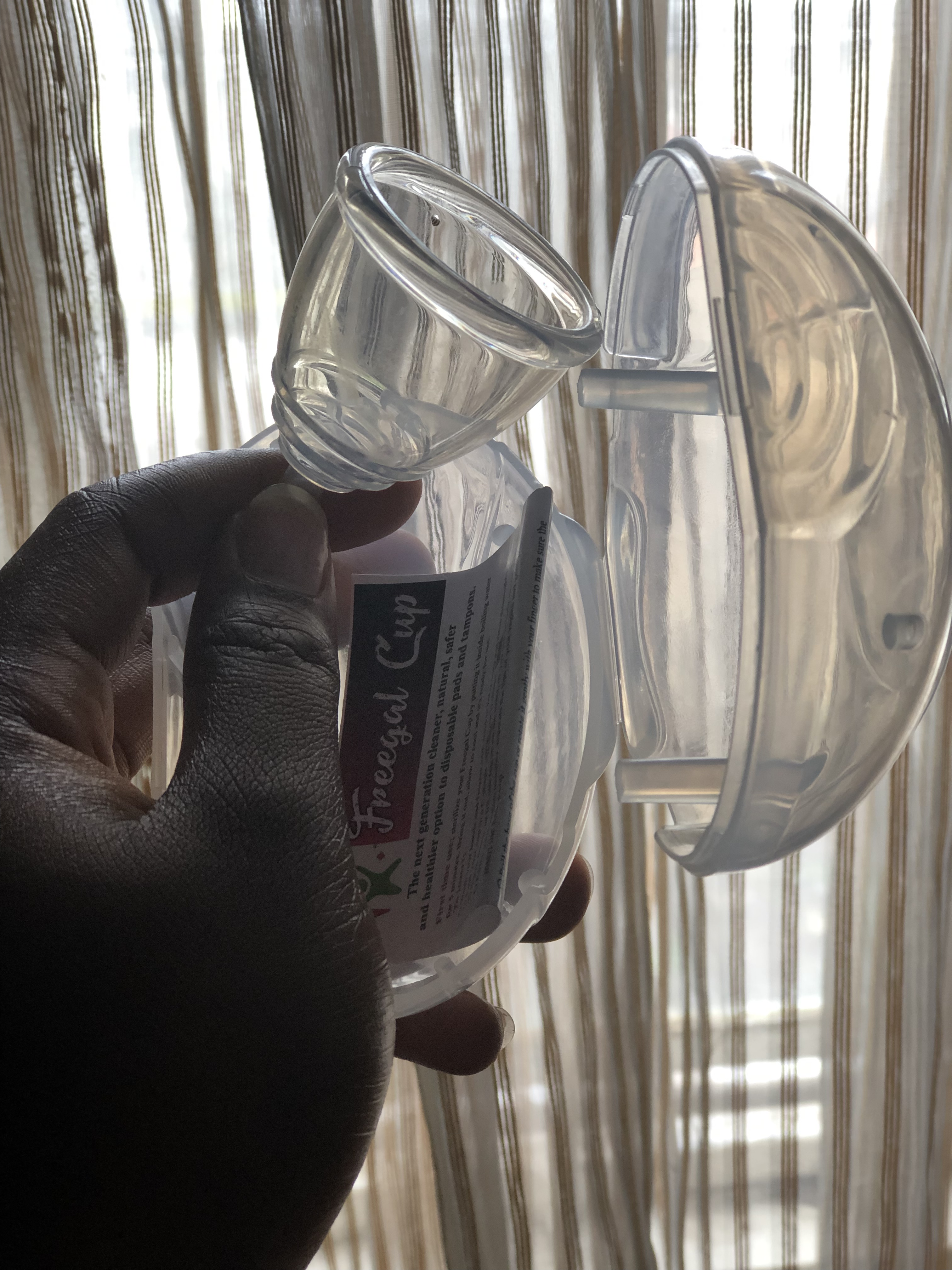 - How does it even work?: The cup I have, and recommend is medical grade silicon. You fold it, to look like a C or U, depends on who is looking at it lol. The folded cup is then inserted into the vagina while one is squatting or like I do, seating on a toilet seat. Just make sure you relax because that makes it easier.